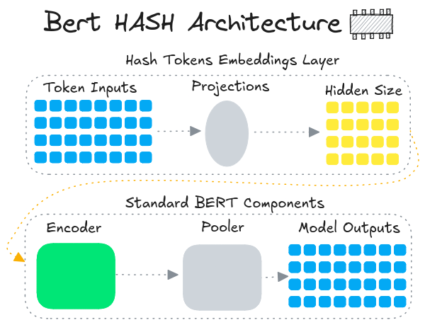 BERT Hash models use a modified embeddings layer that is projected to a smaller dimensional space then re-encoded to the hidden size. Read this article for more background.