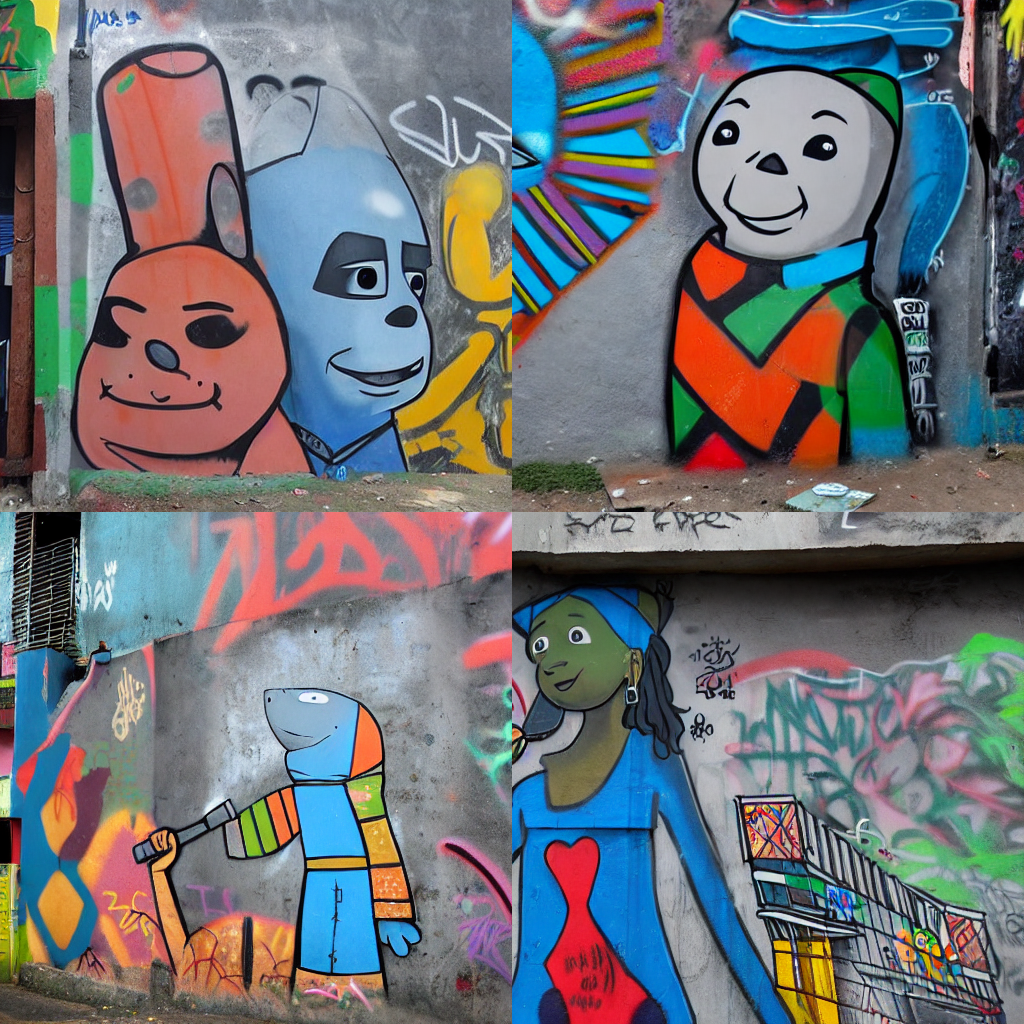 prompt = "a grafitti in a favela wall with a <cat-toy> on it"
