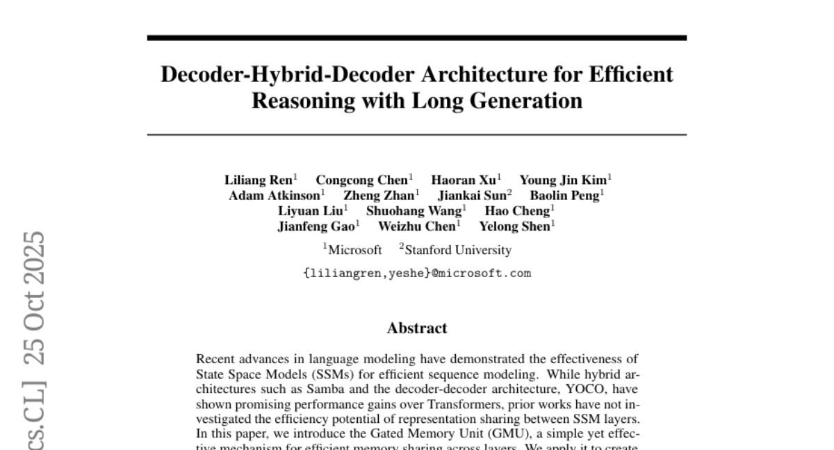 Decoder-Hybrid-Decoder Architecture for Efficient Reasoning with Long Generation